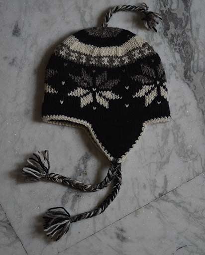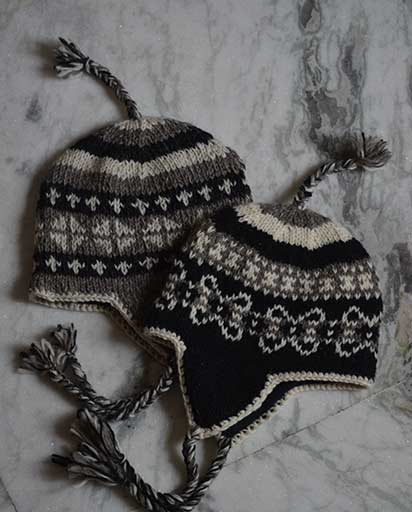 Hand Knitted Woolen Ear Flap Hats. This is a unisex, 100% woolen ear flap hat fully inner lined with warm fleece to keep your ears and head nice and warm. Available in these colors as seen in image. Assorted prints. This woolen hat is entirely handmade in Kathmandu, Nepal by the local Nepalese Women.
