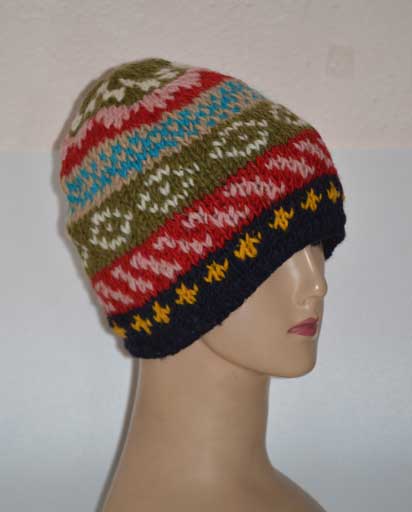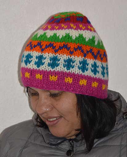 Multi Color Hand Knit Woolen Hats. These are woolen hand knitted hats. These multi color woolen hats are fully inner lined with warm fleece. These woolen hats come in many different multi colors. All our Kathmandu woolen hats and caps are hand knitted in Kathmandu, Nepal by the local Nepalese women.