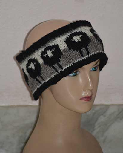 Sheep Design Woolen Handmade Headbands. This is a 100% woolen hand knitted headband with sheep design. This woolen headband is inner lined with warm fleece. This woolen headband is hand knitted in Kathmandu, Nepal by the local Nepalese Women.