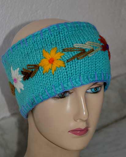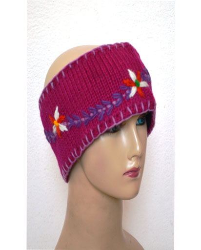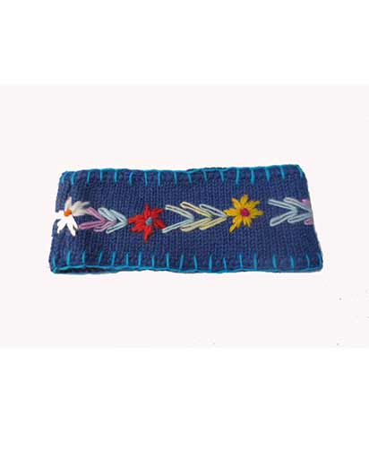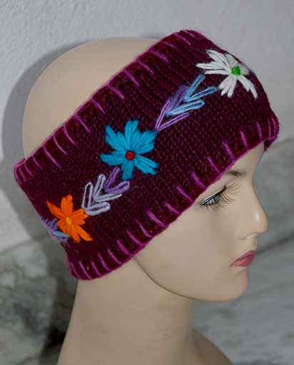 Embroidery On Woolen Head Bands. This is a 100% woolen headband. This woolen headband is inner lined with fleece. This woolen headband will keep your ears warm as well as will keep the hair away from your face. Â This woolen headband has beautiful hand embroidery. This hippie boho head band is hand knitted in Kathmandu, Nepal. Available in assorted colors. (6/7 different colors) Since this is a handmade item there may be slight variances.